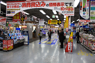 Being my last day I had all my yens to spend if I wanted, so some shopping was in order at some point, but everywhere seemed to be closed and I'd also heard that the Umeda Sky Building was actually worth it. I'd been up Sky Tower in Auckland, New Zealand during last year's holiday and hadn't bothered with this one when I was in Osaka on Saturday, but I thought it would make a good activity for today. I made my way to the north part of Osaka, and on the way detoured through 'Yodobashi', a massive multi-storey electronics store I'd read about.