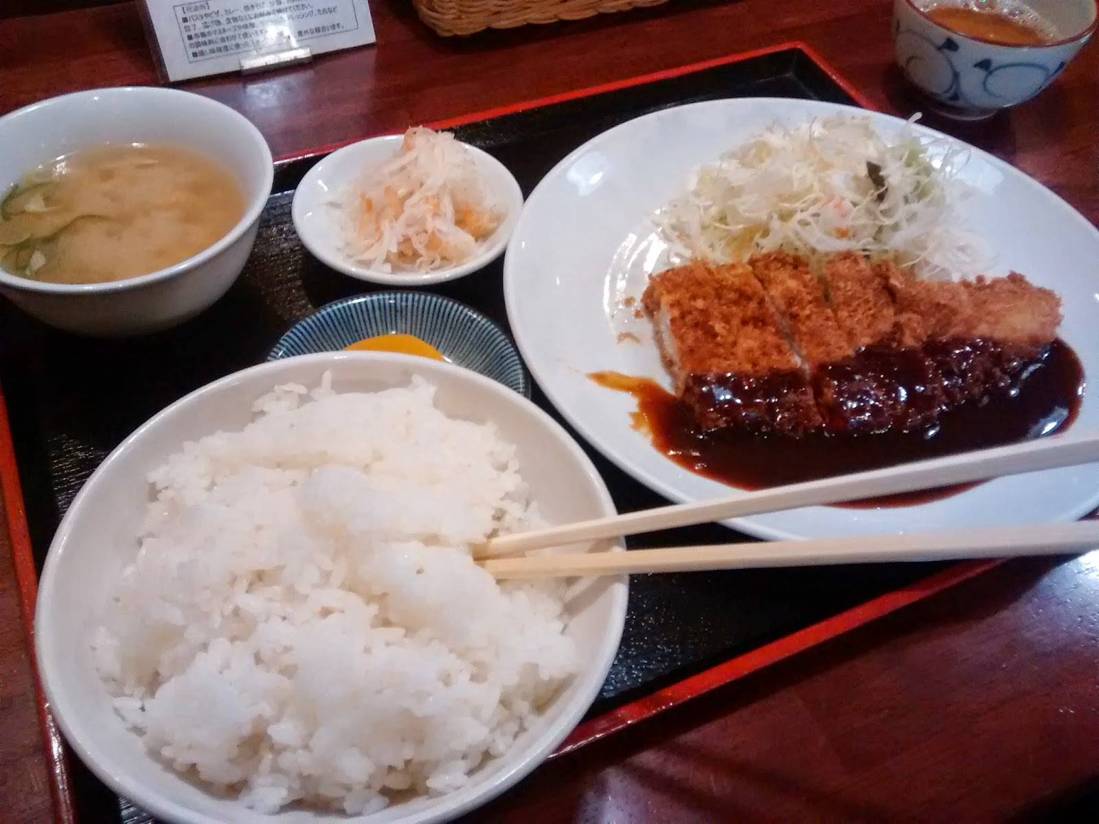 So with a thrill at the thought that somewhere in that building the next Zelda game is being developed, Mewtwo is being made ready for release on Smash Bros, and who knows what other secret projects are being worked on for me to enjoy later on, I went off to find some lunch. Tonkatsu today! I've had something different every day so far. This was pretty 'basic' fare, my brother Matthew could probably have done better, but it was nice, and the price of a McDonald's. I like how every meal has all these bits to go with it, miso soup, green tea, a small side or two of some weird vegetable!